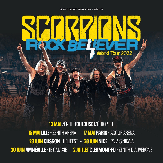 En février 2022, Scorpions dévoileront leur nouvel album Rock Believer. Rendez-vous le 21 octobre pour découvrir le premier extrait de cet opus avec Peacemaker. Scorpions partiront également en tournée et, comme à leur habitude, le groupe allemand n’a pas oublié la France avec pas moins de 7 dates dont le Hellfest.
