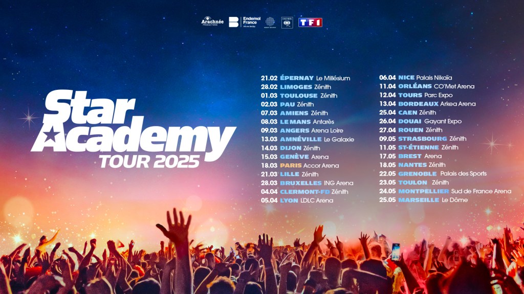 Les 7 prochains élèves ont participé à la tournée Star Academy qui a été un grand succès dans toute la France. TF1 lance d’ores et déjà une tournée pour 2025 avec une mise en vente des places le 11 octobre – ambitieux mais pas surprenant vu l’énorme engouement pour la dernière saison.